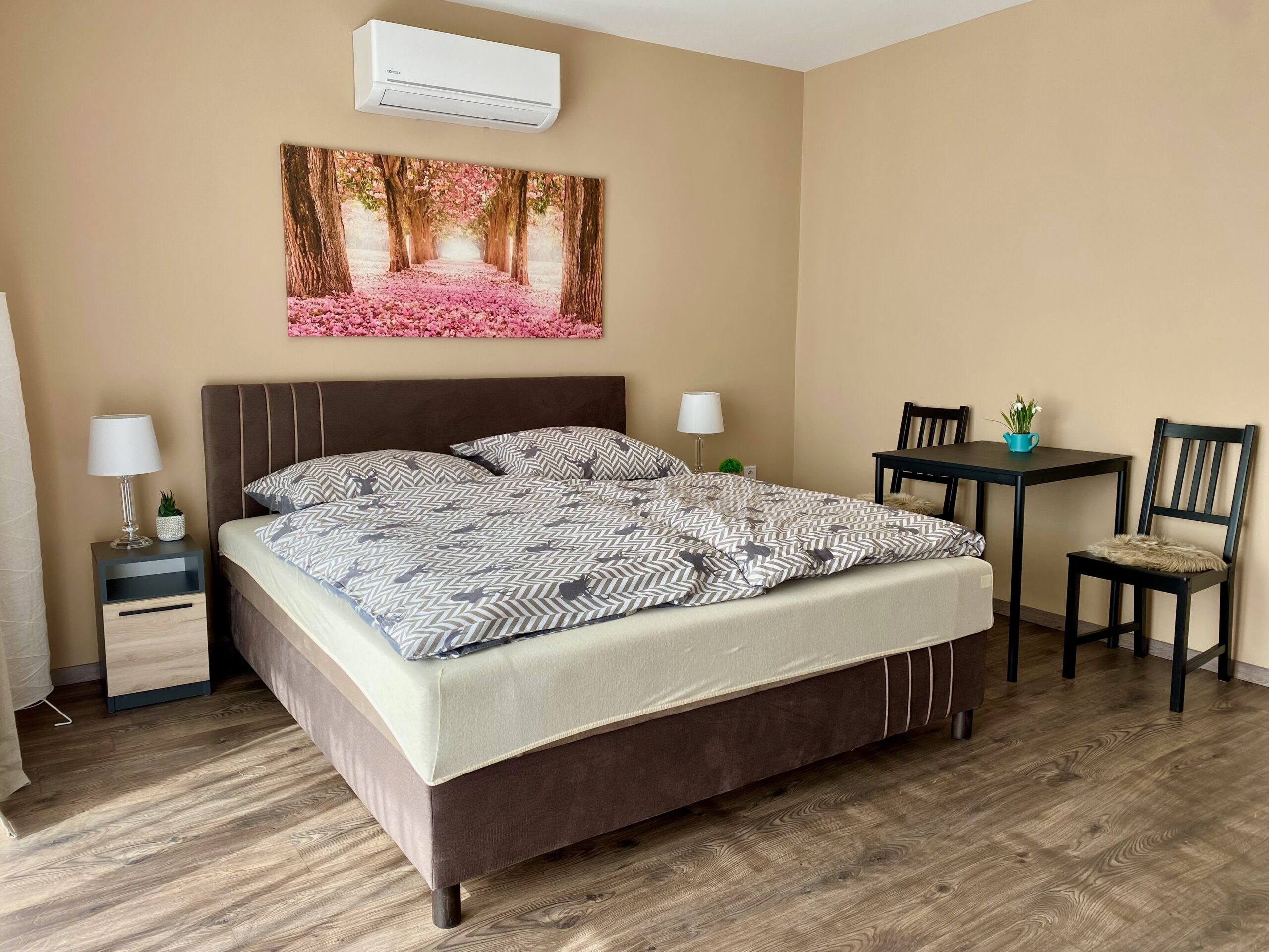 Minden helyiségben klímaberendezések (hűtő-fűtő) biztosítják a felfrissülést a meleg nyári napokon is.