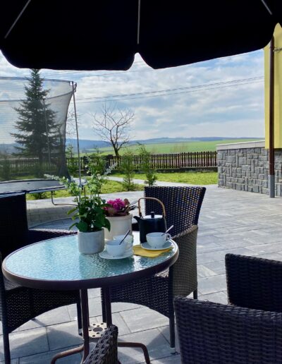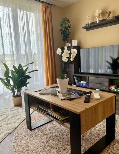 Terasszal rendelkező nappalink 3 fő elszállásolására alkalmas (funkcionális kanapén illetve bekészíthető pótágyon).