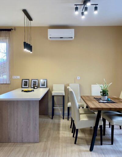 Minden helyiségben klímaberendezések (hűtő-fűtő) biztosítják a felfrissülést a meleg nyári napokon is.